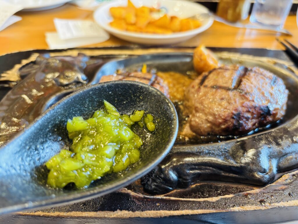 さわやかハンバーグでは定番のオニオンソースが一番人気ですが、きざみわさびソースも良い味をしているのでおすすめの一つです。