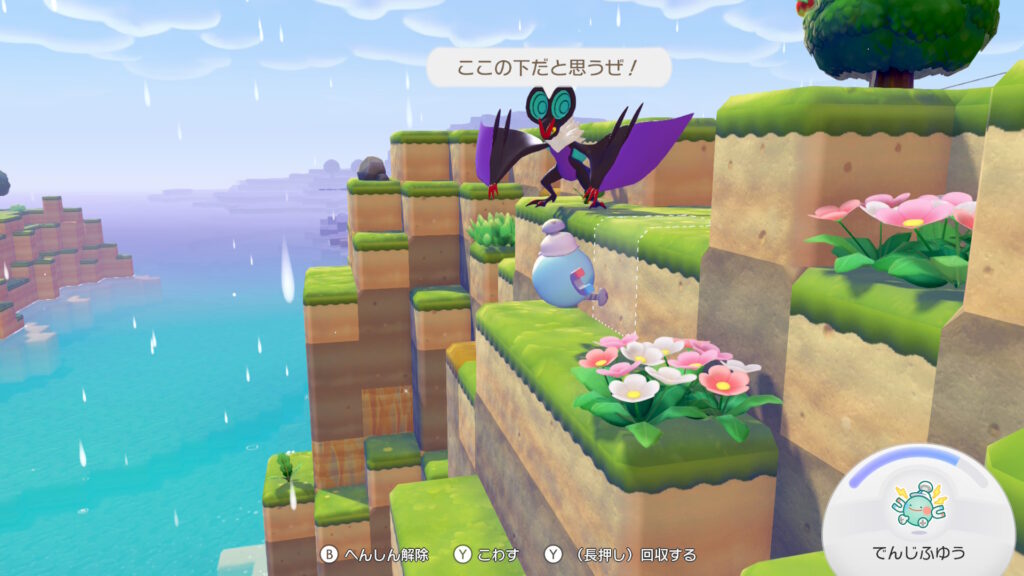 空が飛べて「さがしもの」ができるポケモンと一緒にダウジングをする