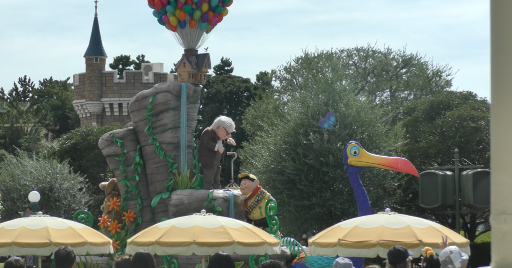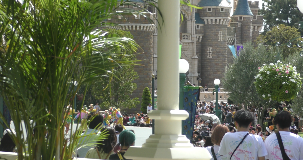 クリスタルパレスレストランからパレードを見ることができますが、音楽は聞こえず遠目となってしまいます。