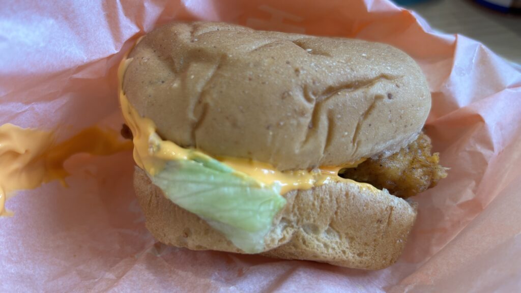 チキンフィレは結構脂っこく、大きさの割には重ためになっていました。