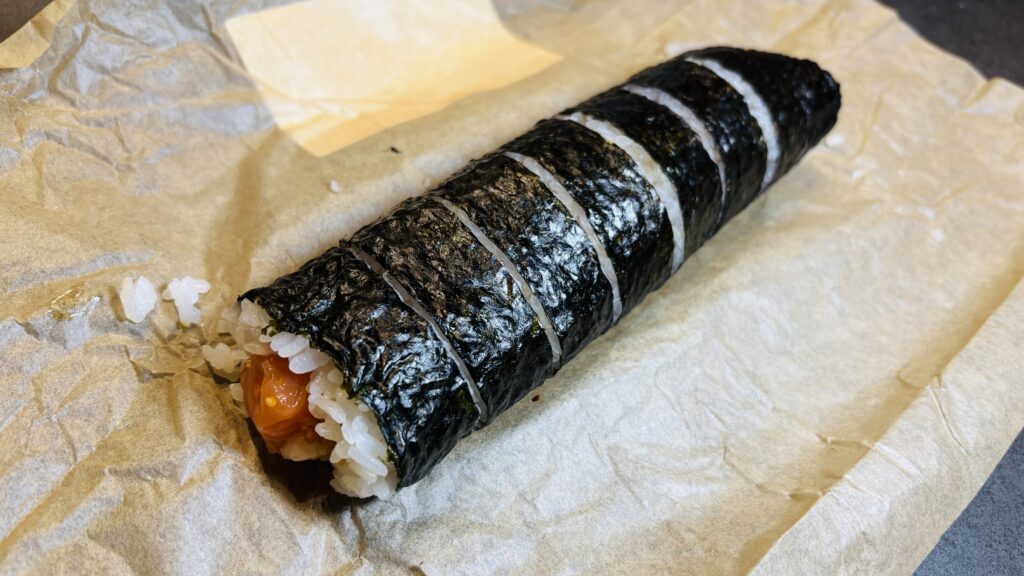 コストコのサーモンポキロールはフードコートで手軽に買えて、量も多くないのがいいところでした。