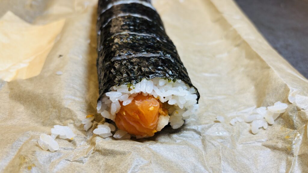 サーモンはずっしりとはいっており、食べ応え・噛み応えがあります。