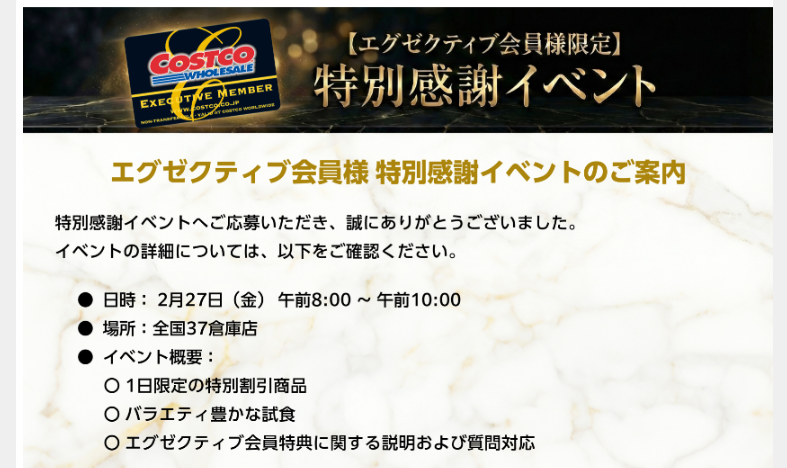 コストコエグゼクティブ会員特別感謝イベントの内容は?