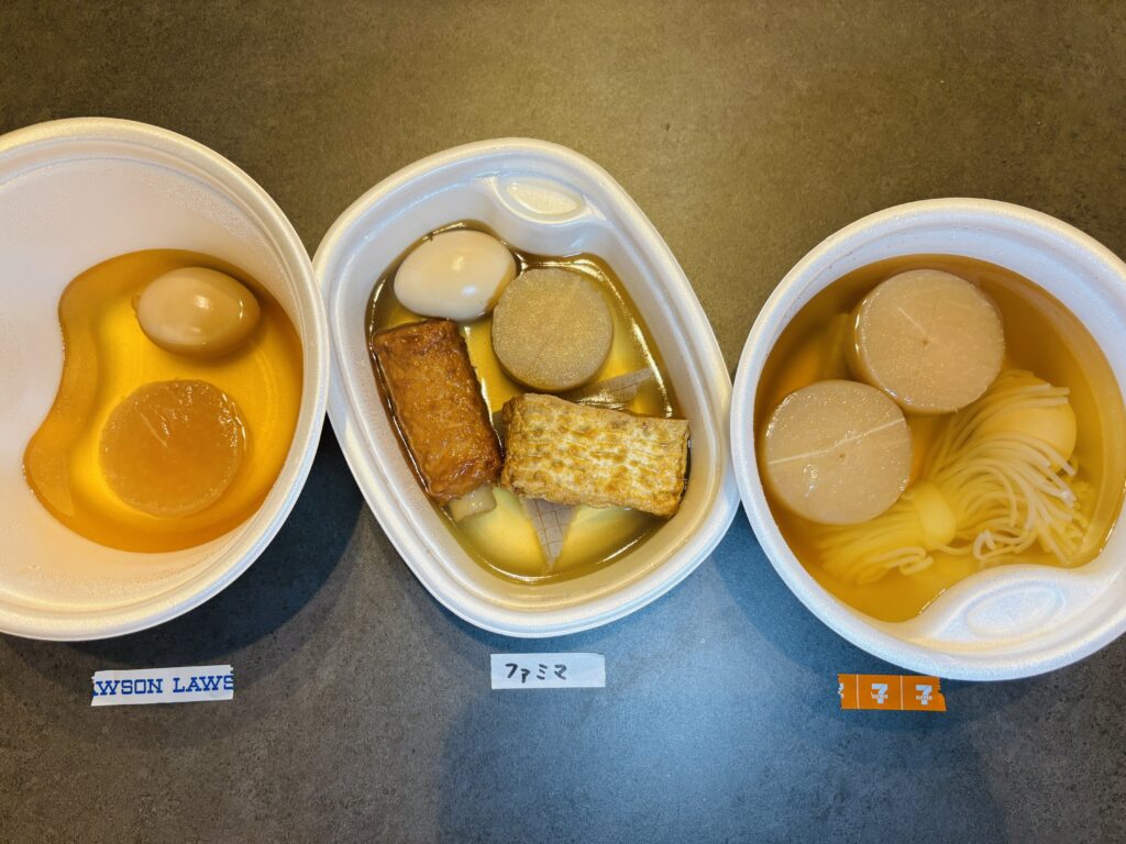 コンビニのおでんを大手3社(ローソン・ファミマ・セブン)で比較してみました。