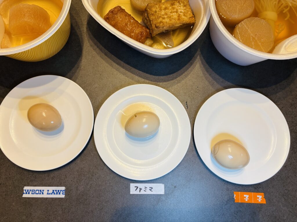 コンビニおでんはどこも同じ味だと思っていましたが、同時に食べ比べてみると意外と味の差がしっかりしていました。