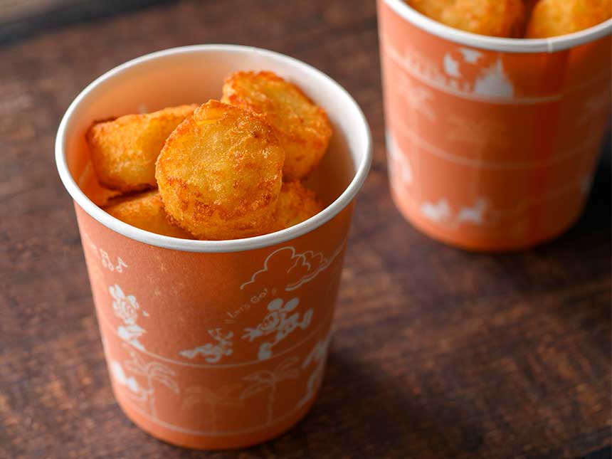 刻んだ玉ねぎの入ったオニオンハッシュドポテトは、ディズニーランド内ではラ・タベルヌ・ド・ガストン一か所のみとなっています。
