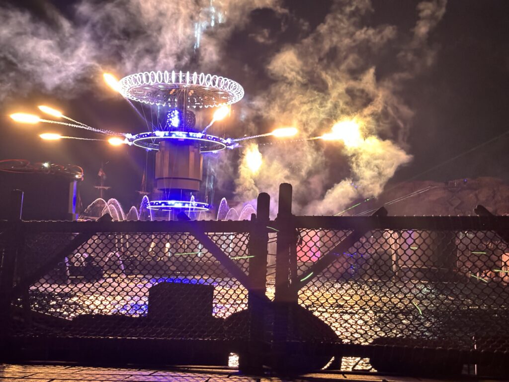 下記画像がハーバーサイドテラス席からと、ピアッツァトポリーノ(ミッキー広場)からの見え方になります。
