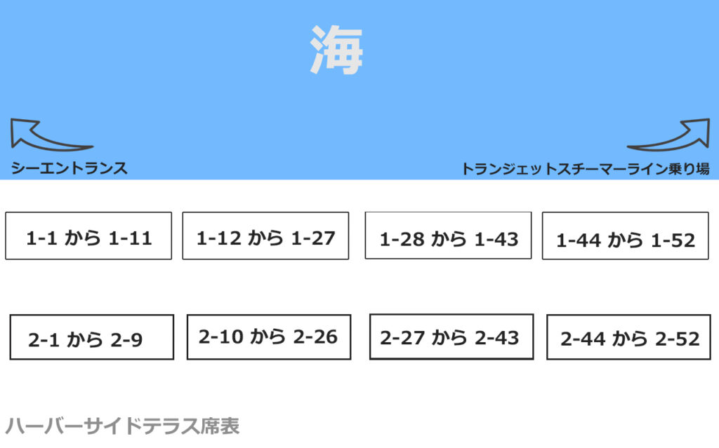 ハーバーサイドテラス座席表(座席番号)はどこ?見え方を写真付きで|ビリーヴシーオブドリームスのまとめ