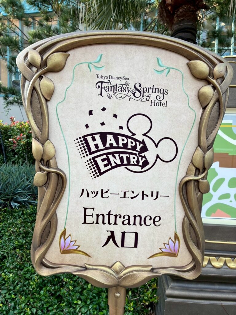 ファンタジースプリングスホテル・ミラコスタに宿泊の場合は、ランド・シーどちらもハッピーエントリーが必ず付いてきます。