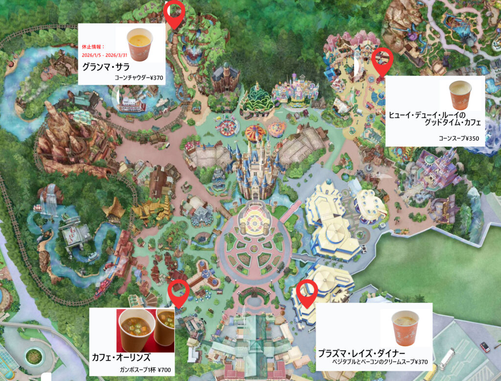 バケパフリードリンクでスープ飲み放題できる対象店舗は?ディズニーランドエリア