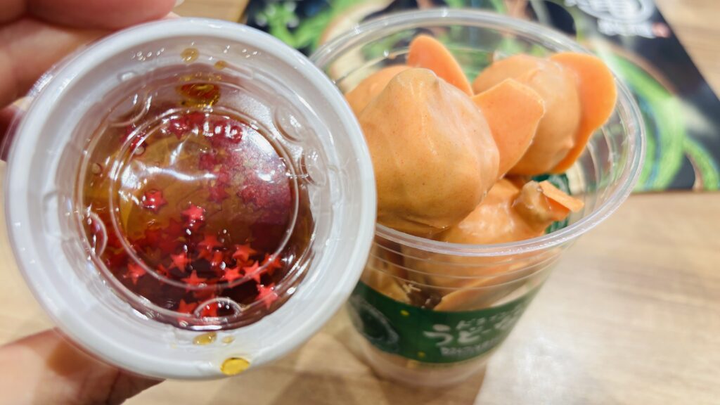 メープルシロップ漬けになっている星のチョコレートを自分でつけてドラゴンボールを完成させるようになっていました。