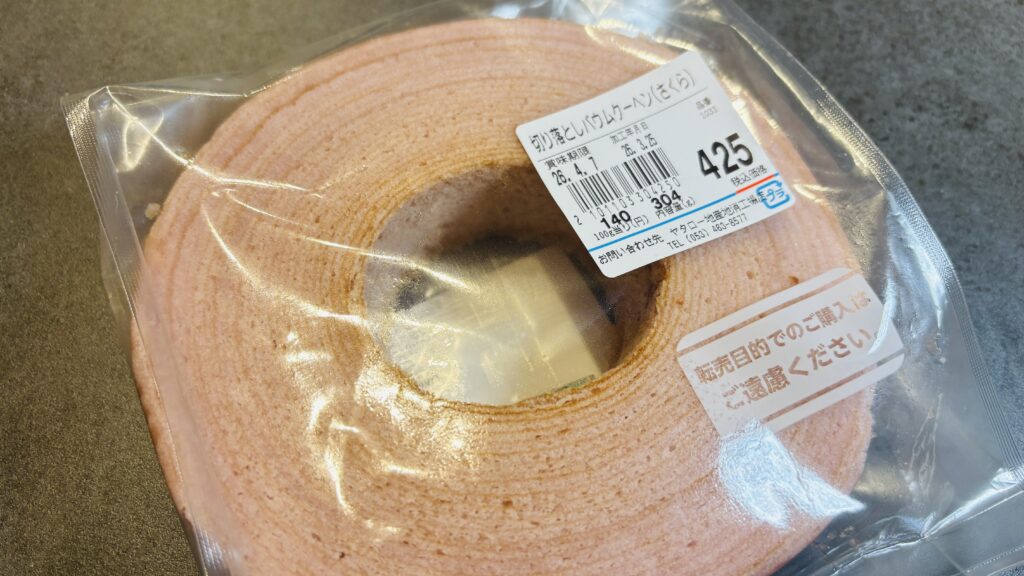ヤタローアウトレット店にて治一郎のバームクーヘンの切り落とし(桜味)を購入してみました。