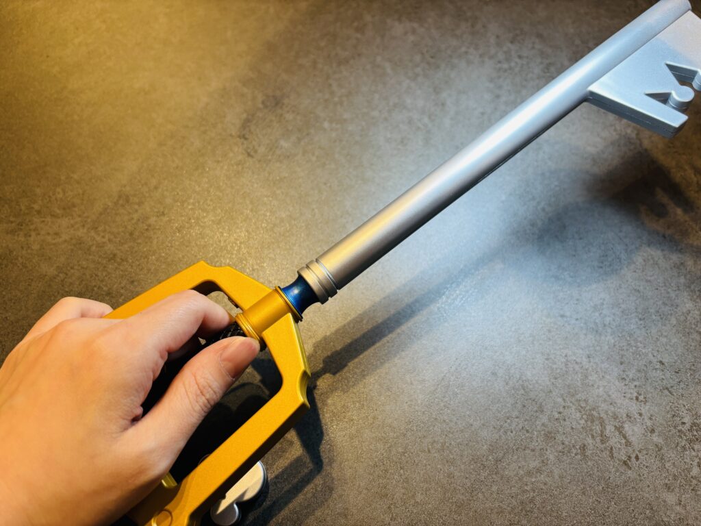 実際のキーブレードの長さはソラ本人の腰を超え、胸近くまでくる長さとなっています。